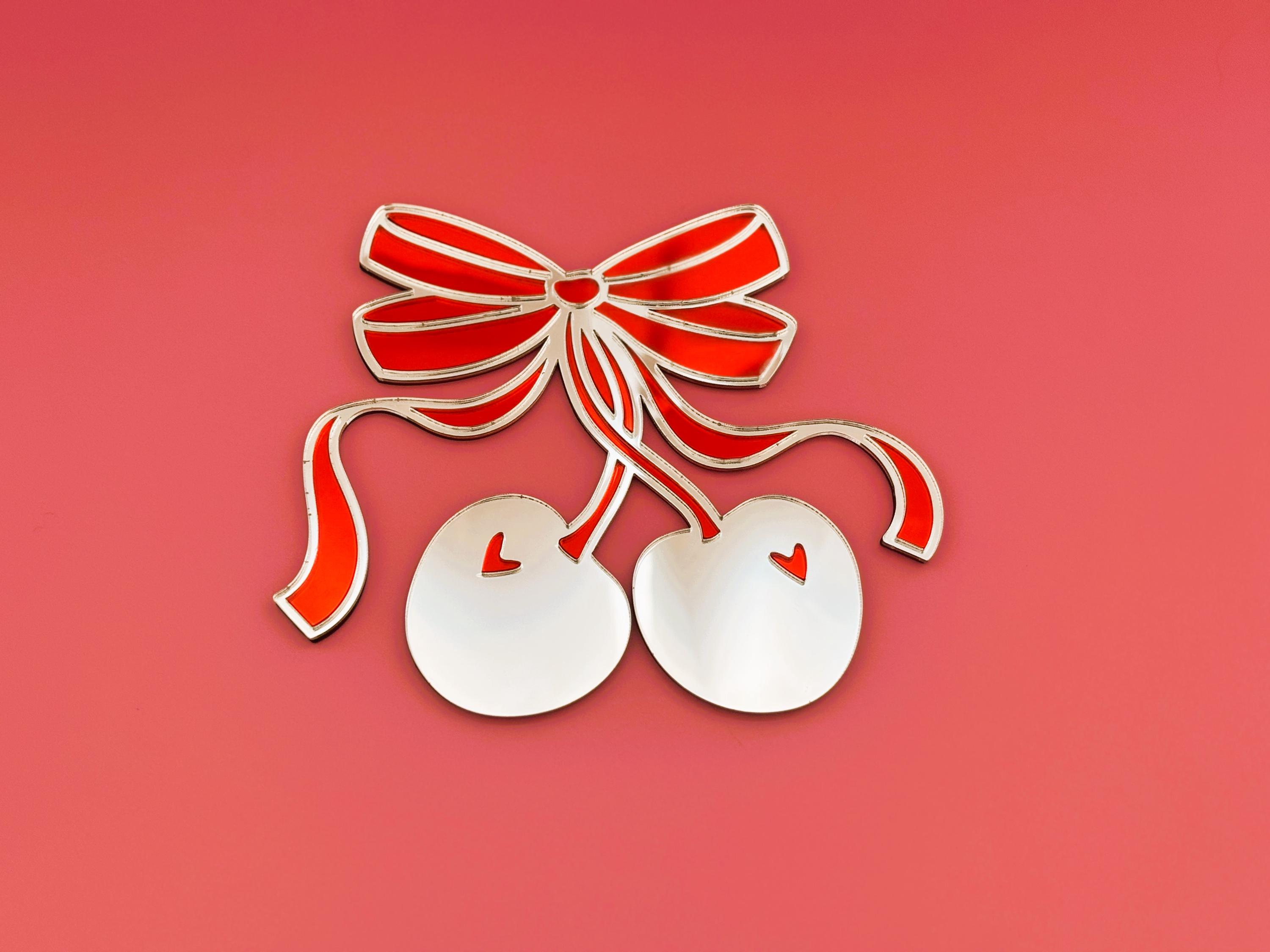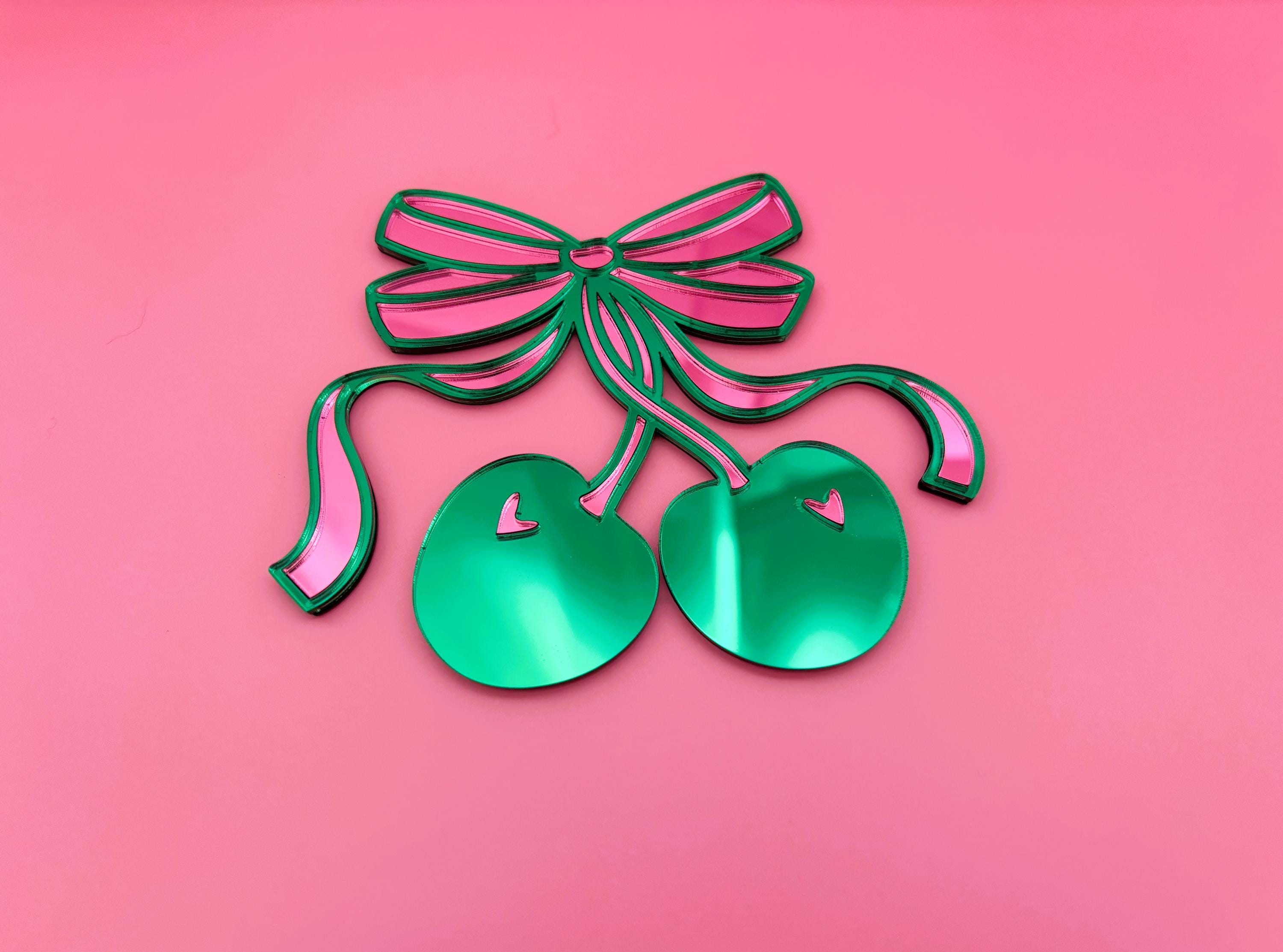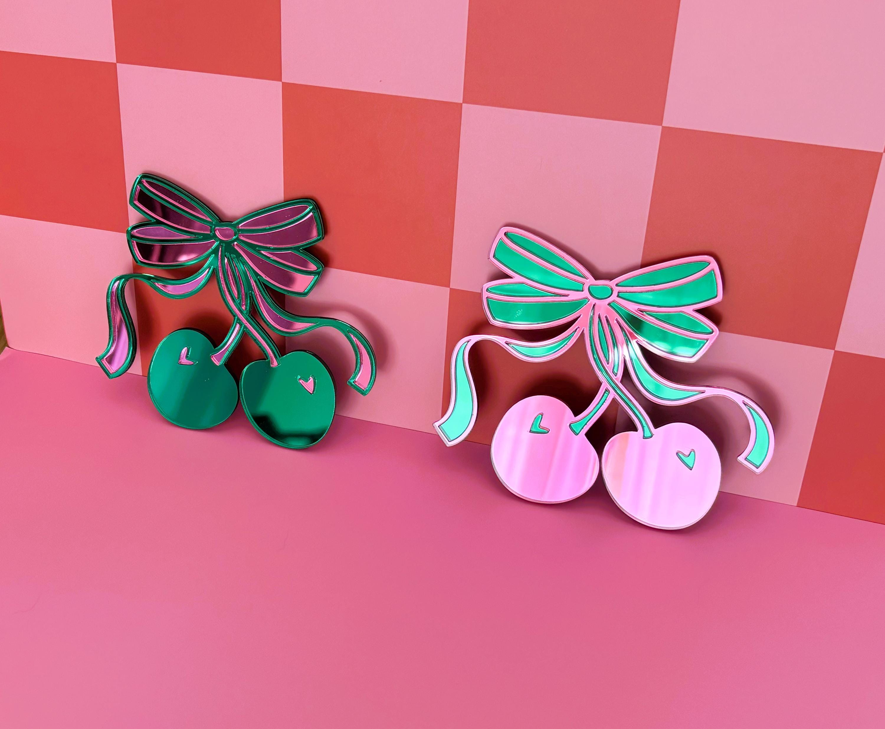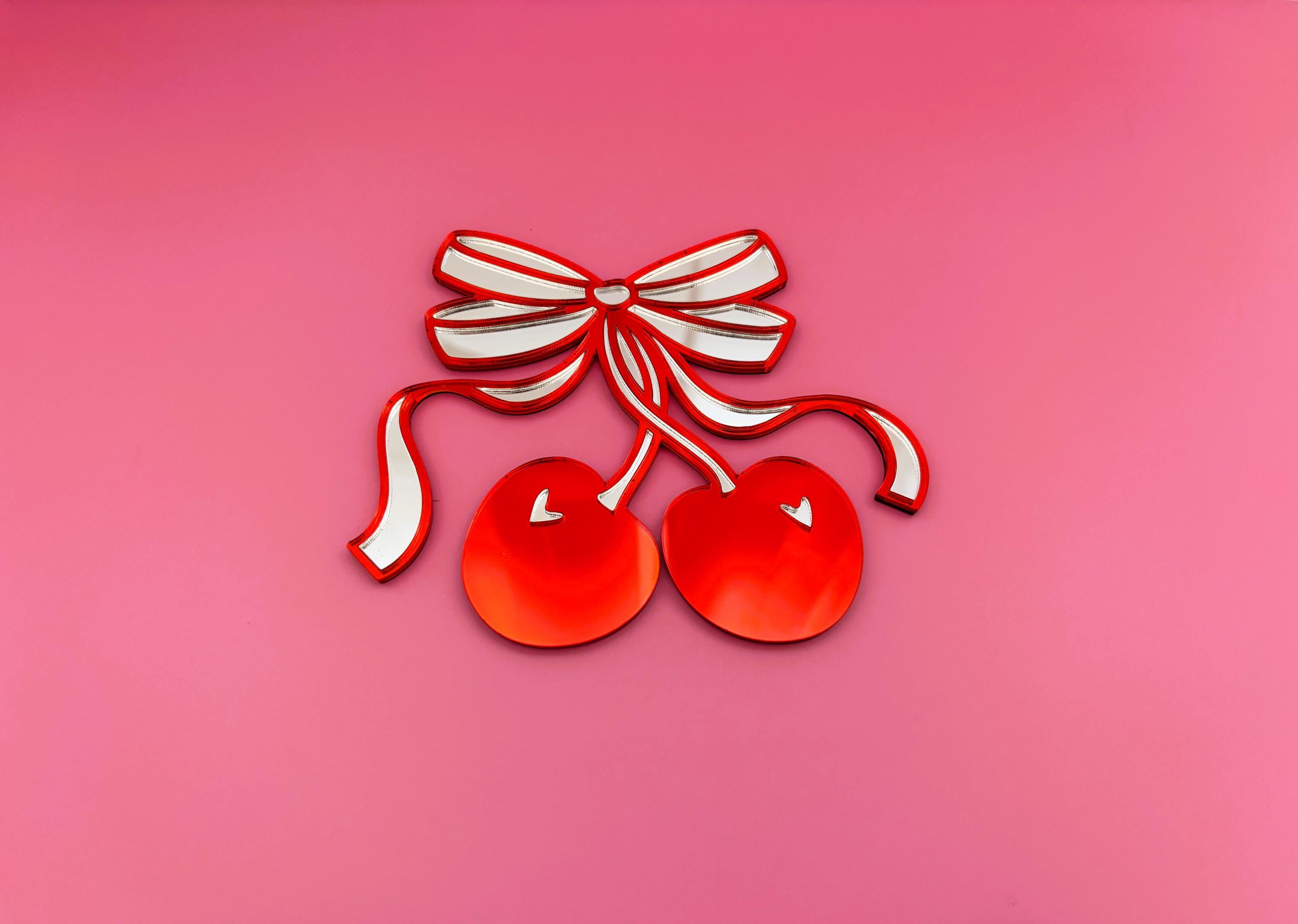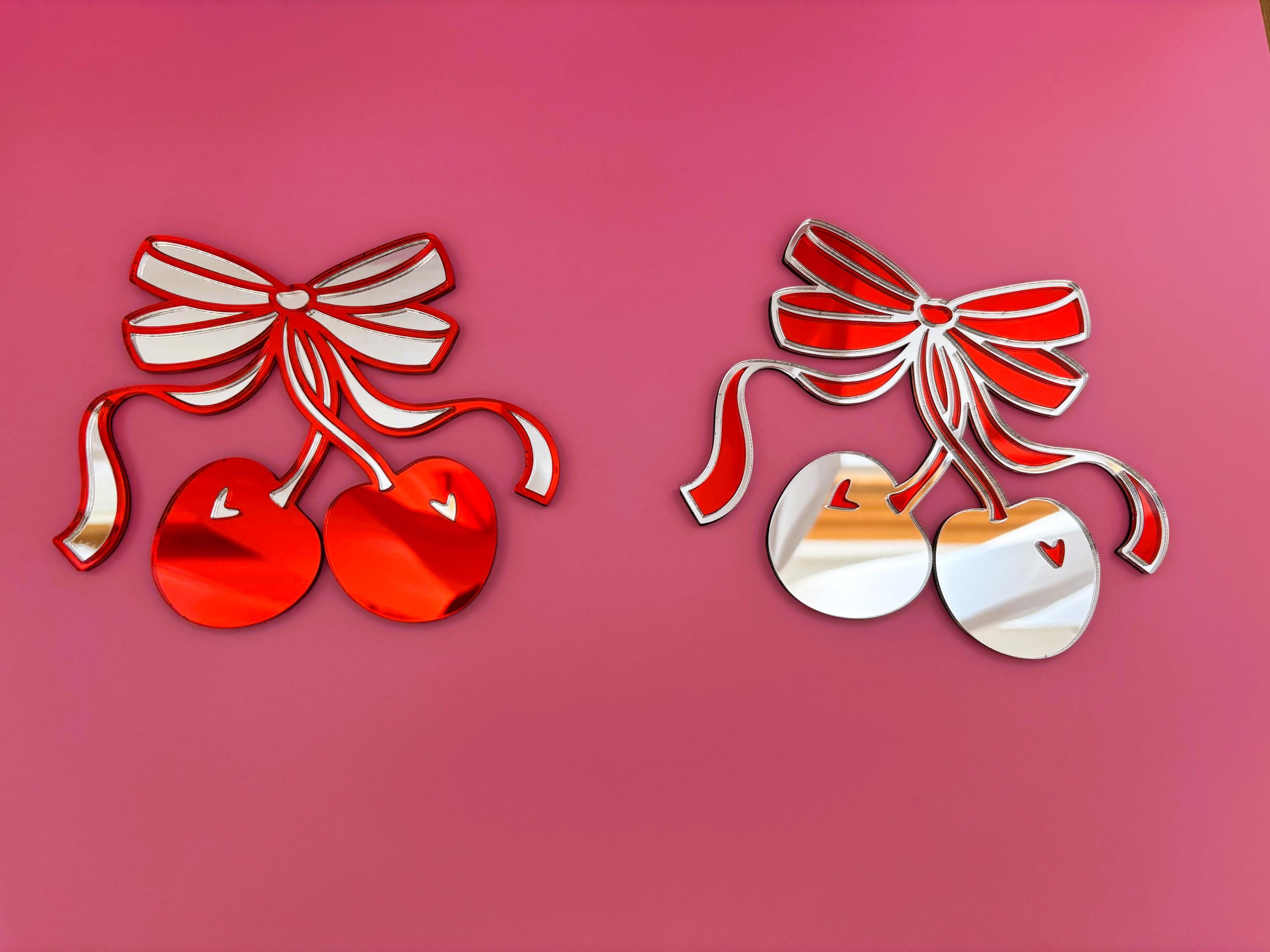 Cherry Bow Acrylic Mirror: Pop Art Coquette Wall Decor