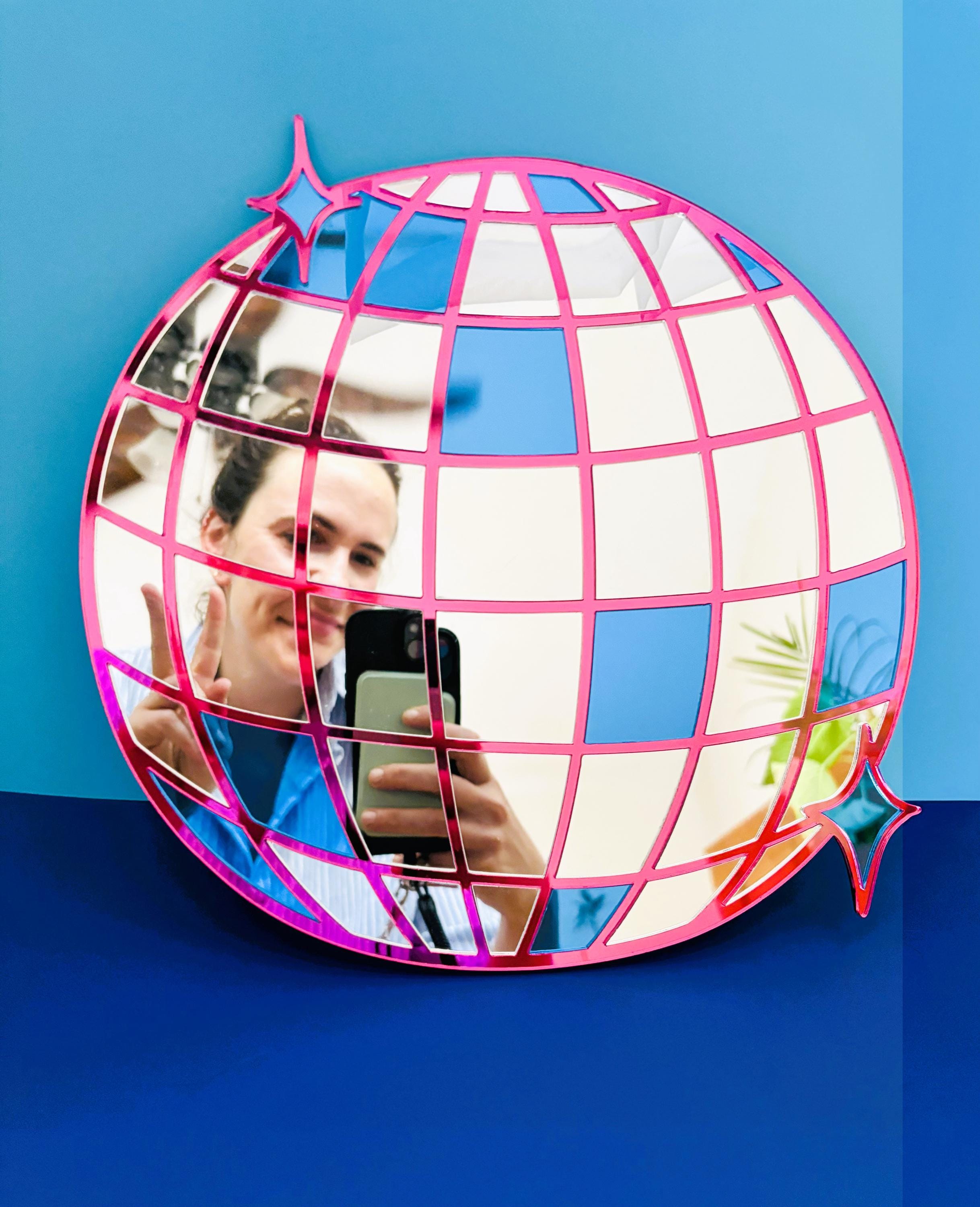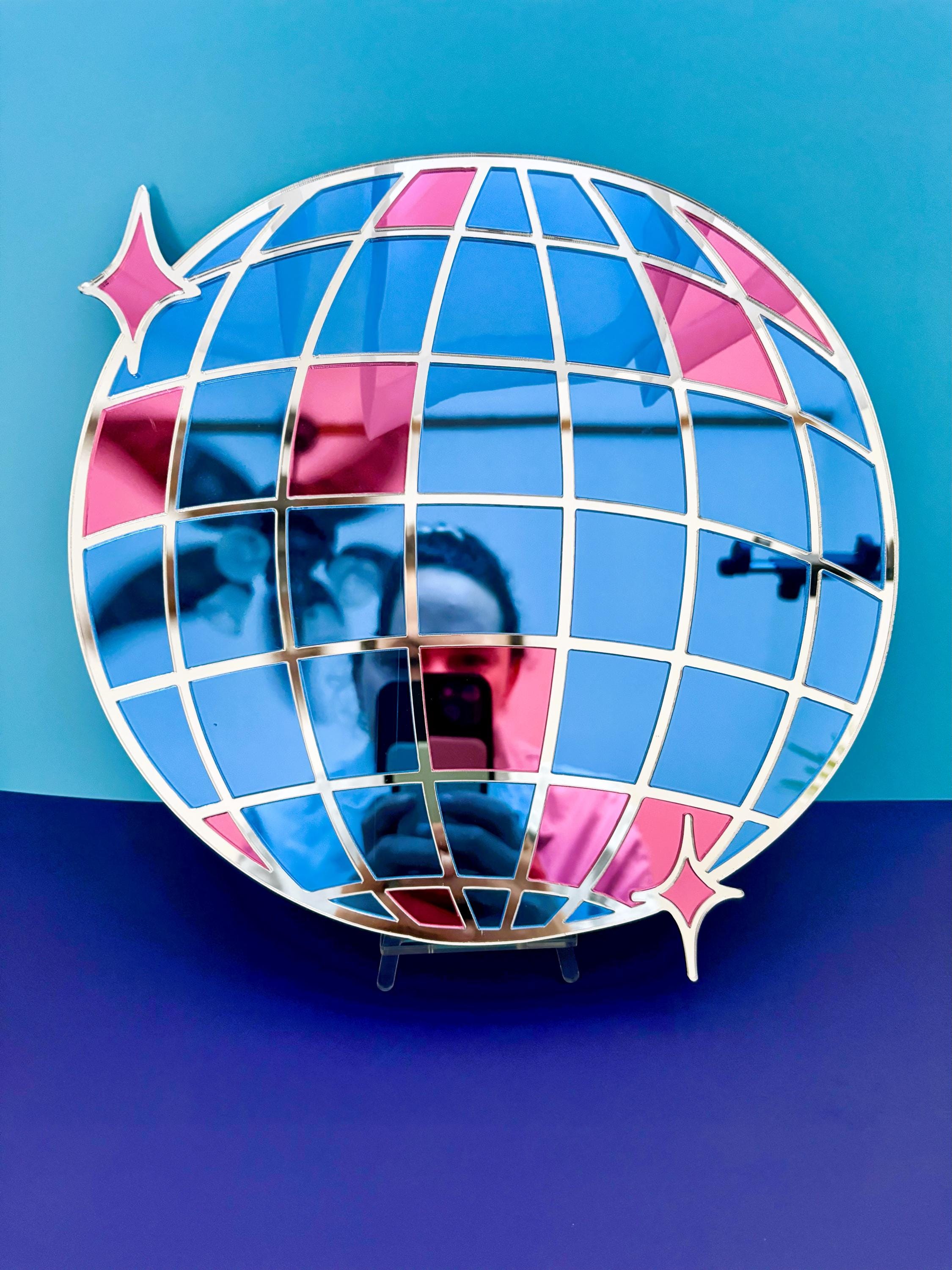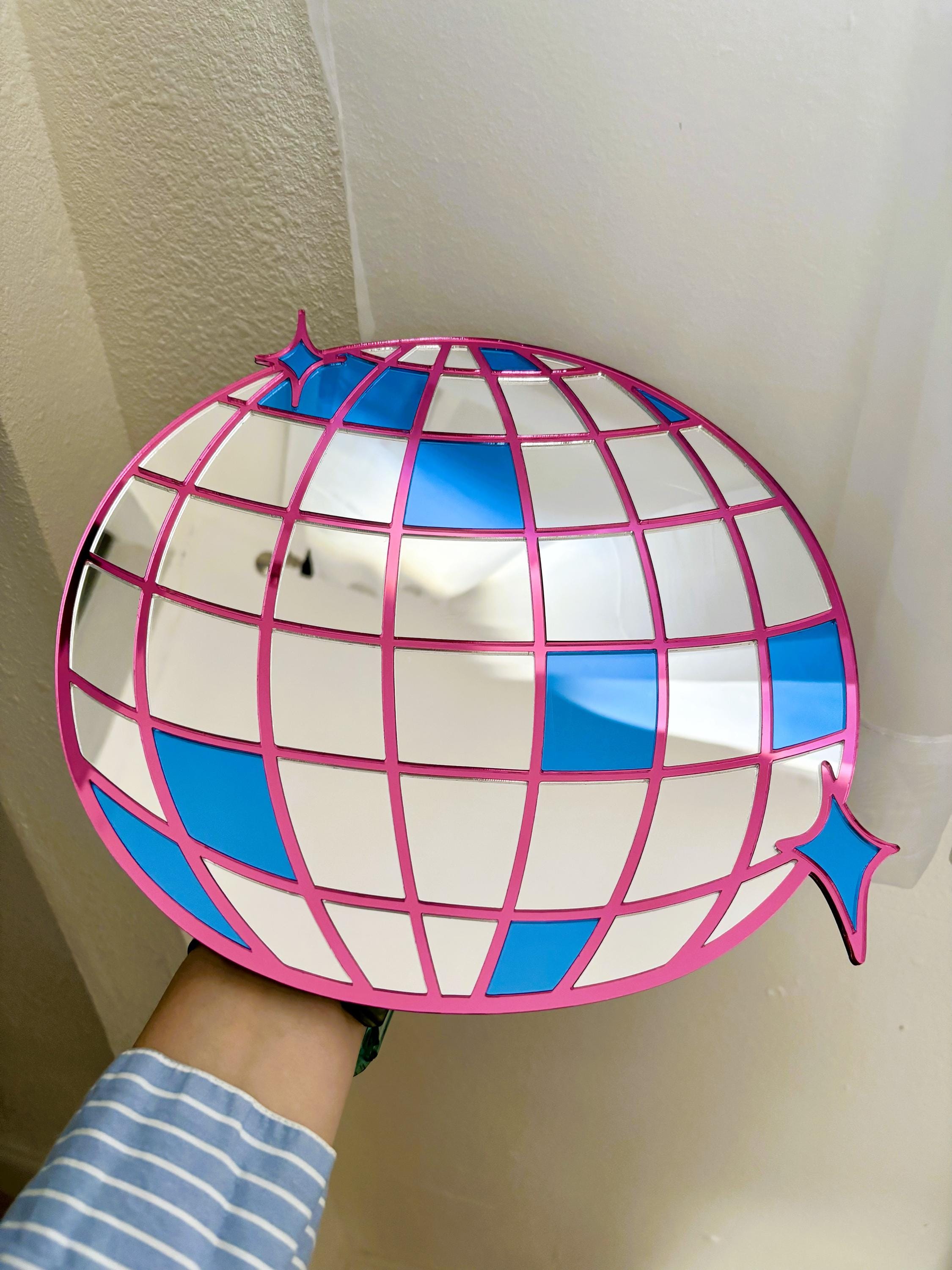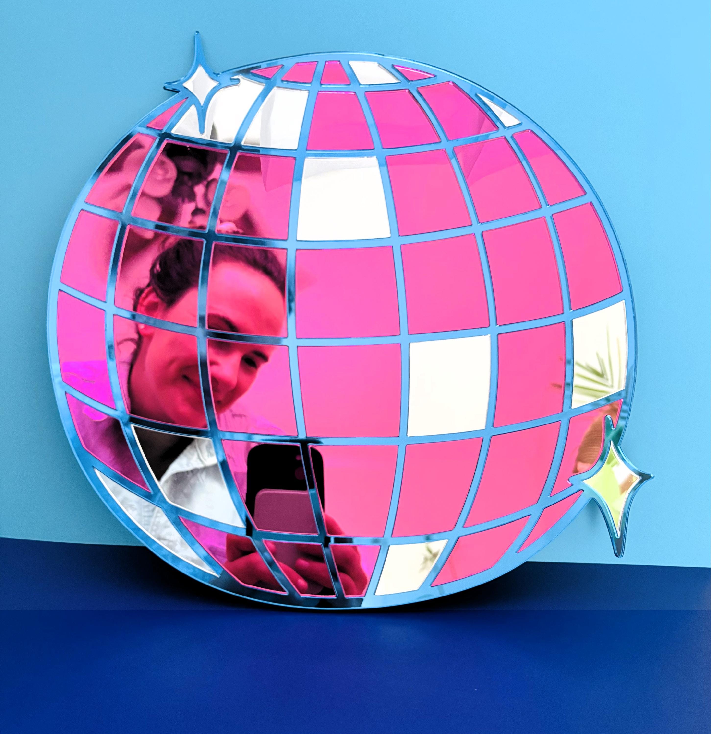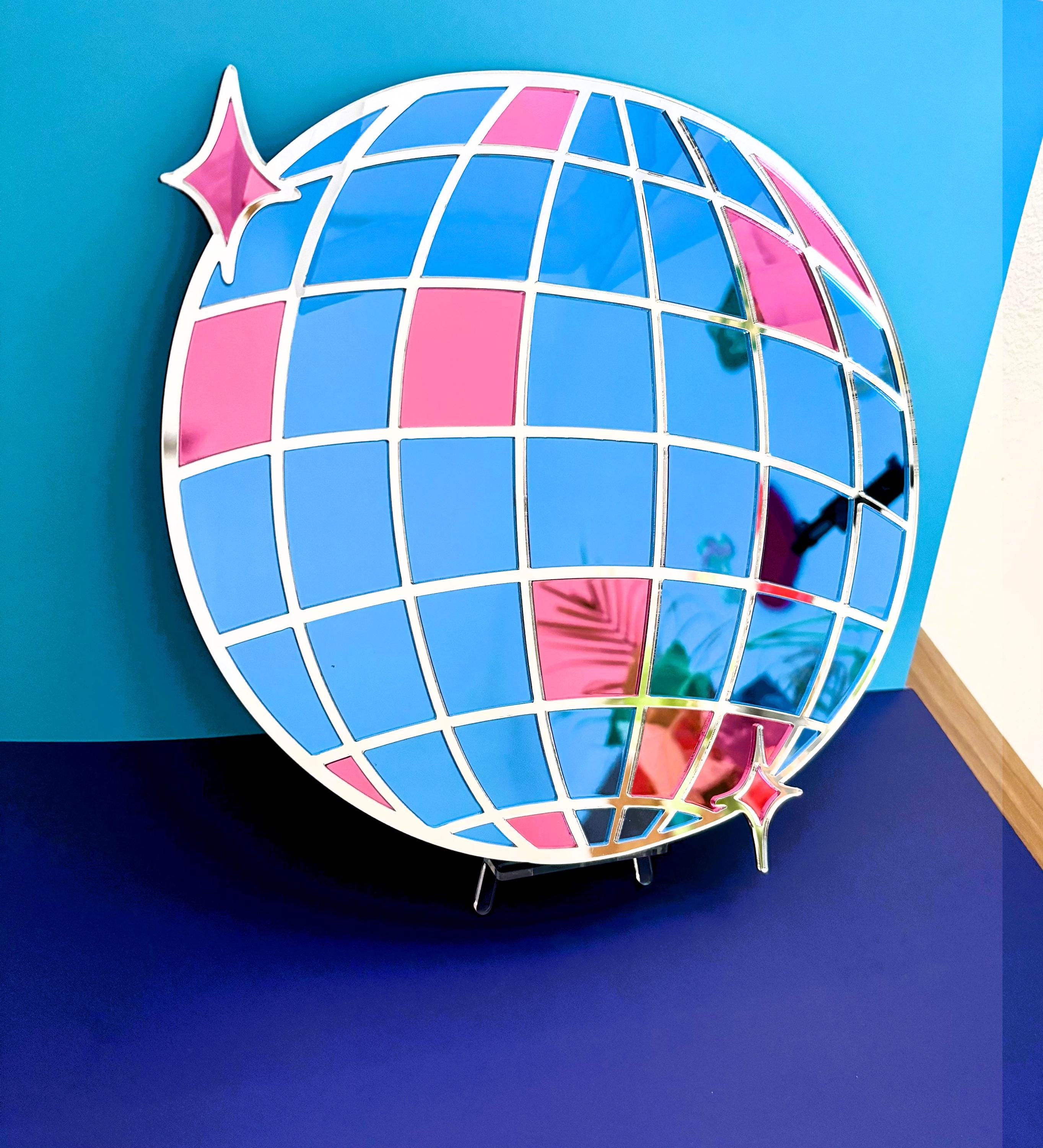 Disco Ball Mirror: Mirrorball Silver, Blue, & Pink Acrylic Wall Decor
