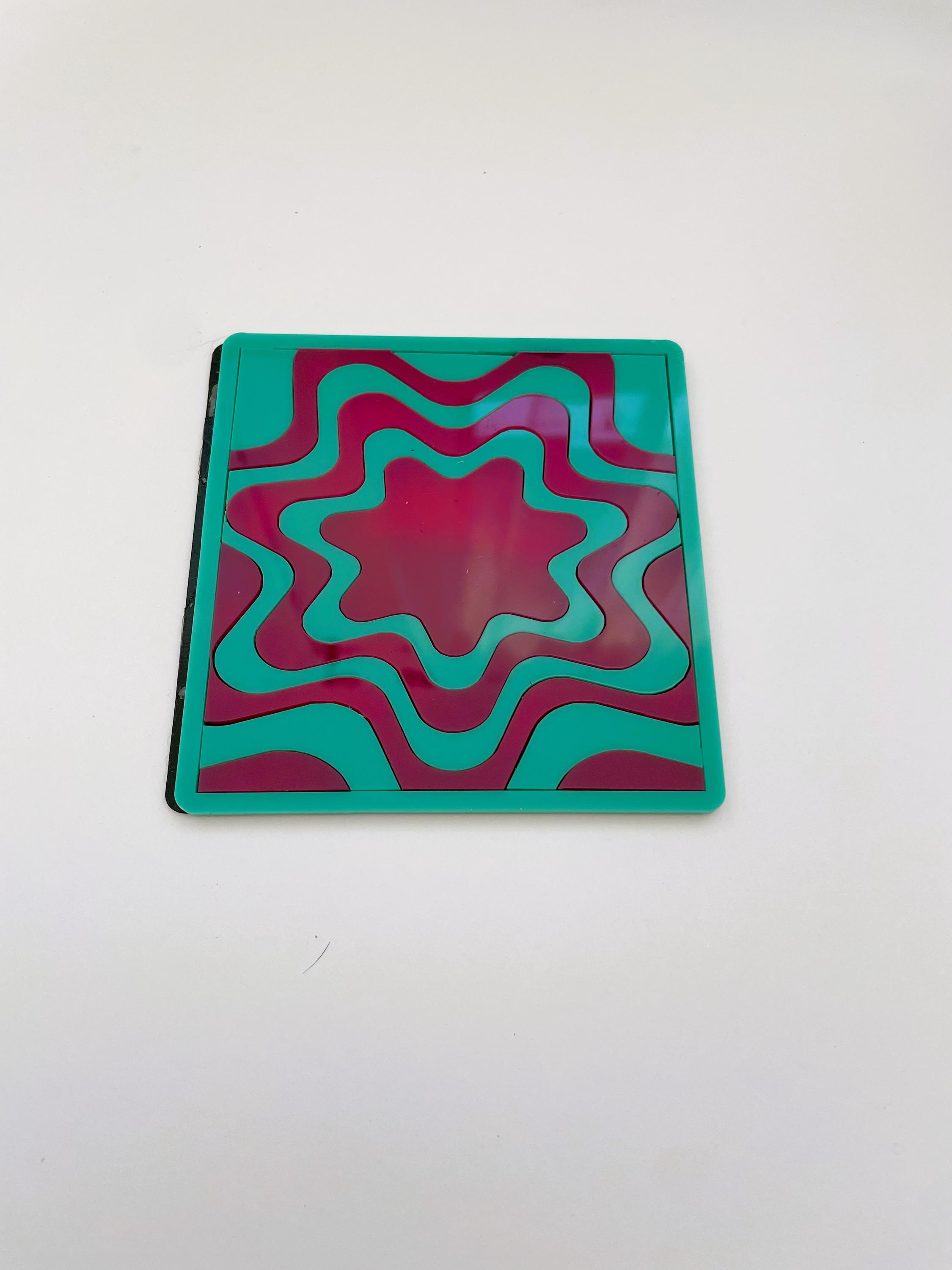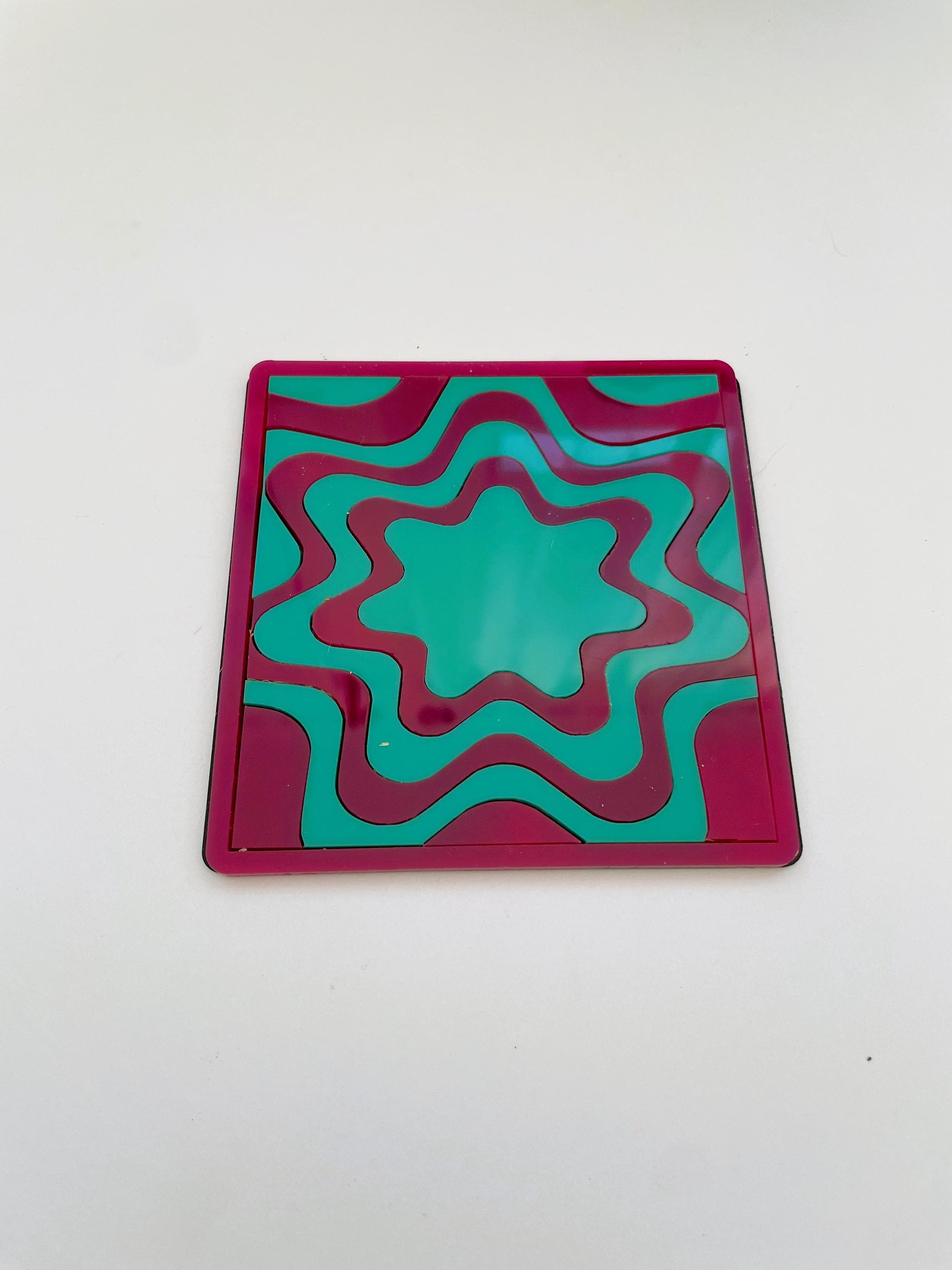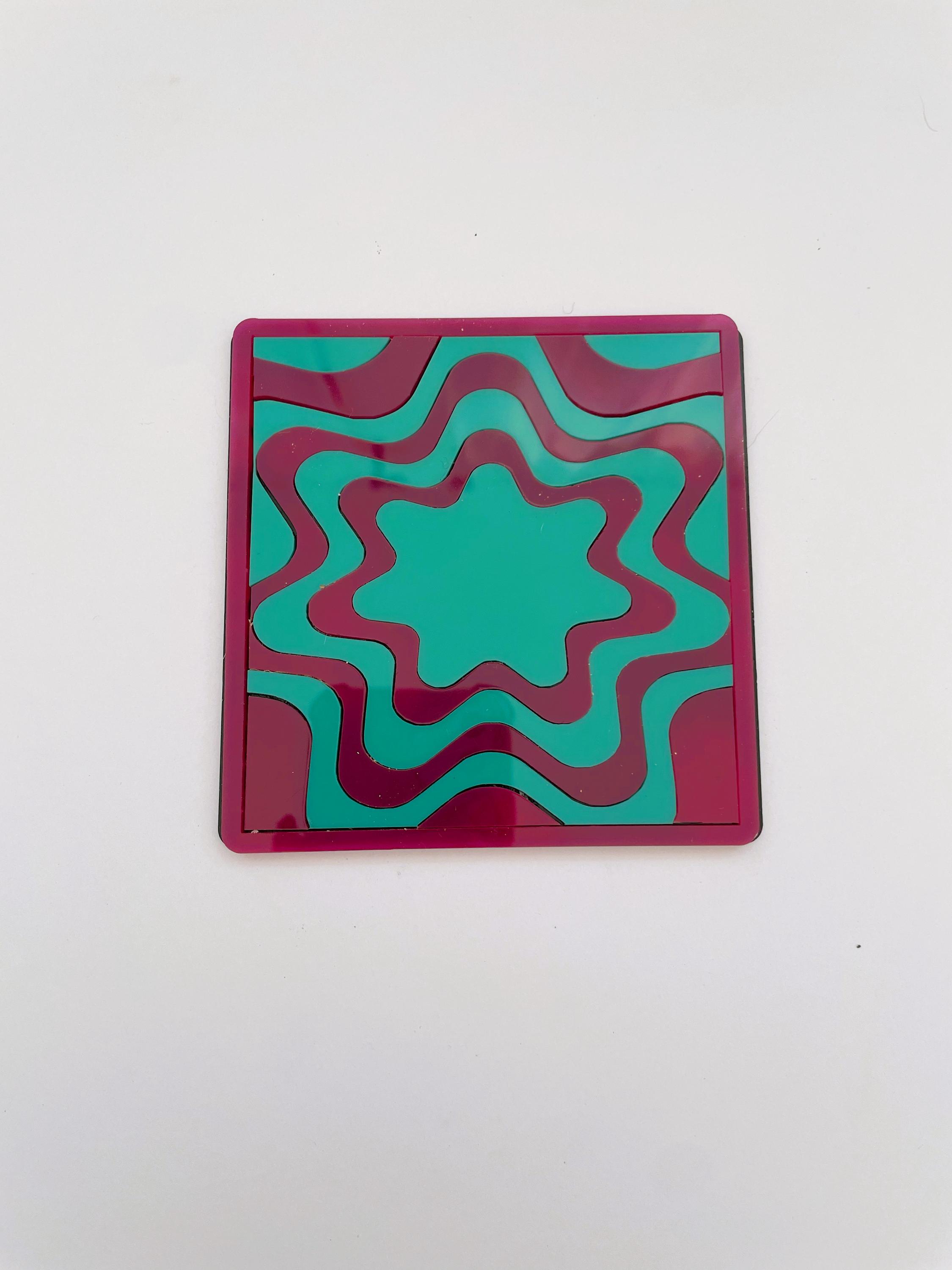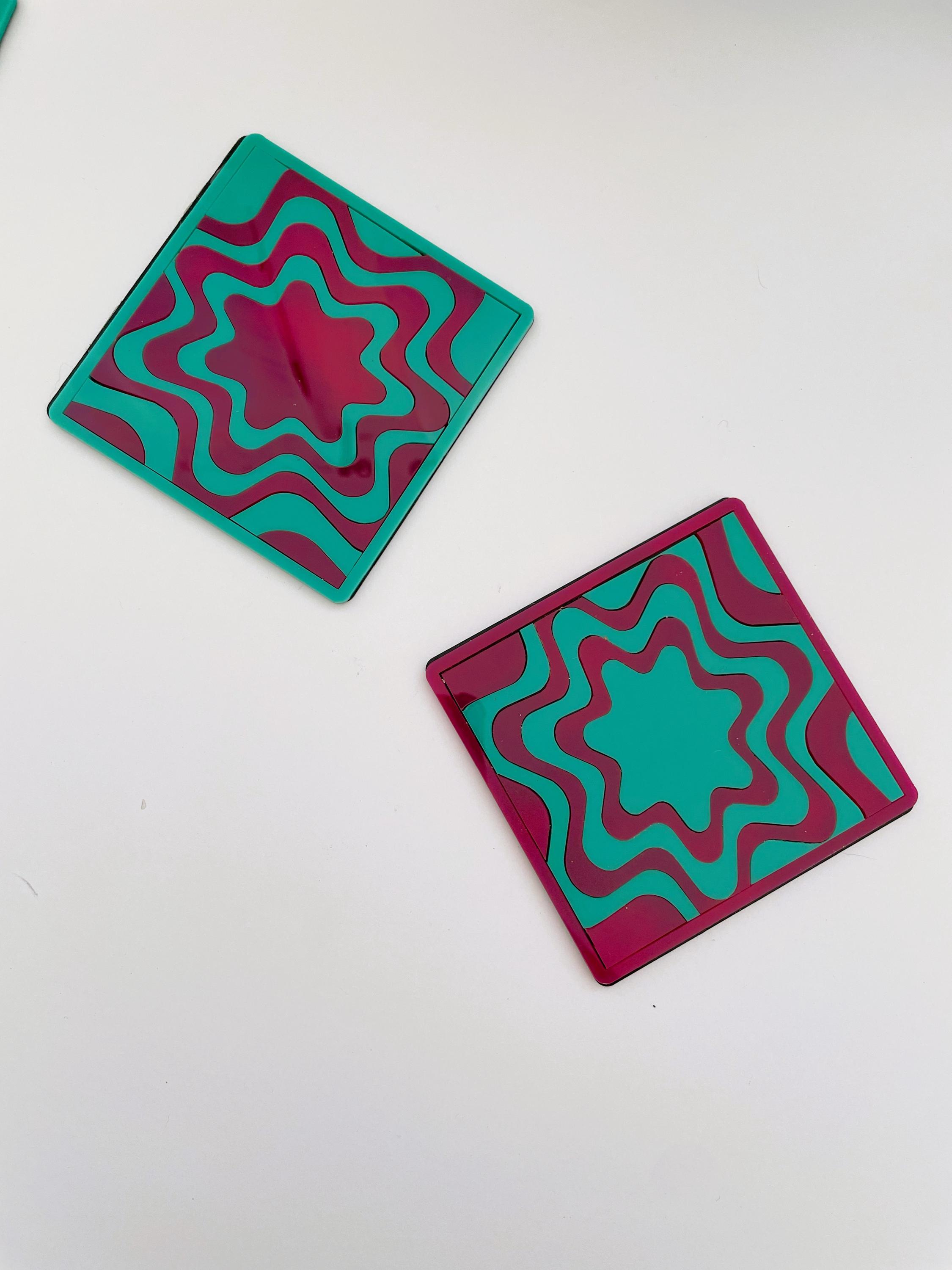 Add a splash of retro flair to your table! These layered acrylic coasters feature bold sunburst patterns in glossy, high-shine colors. Perfect for protecting surfaces while doubling as eye-catching décor.