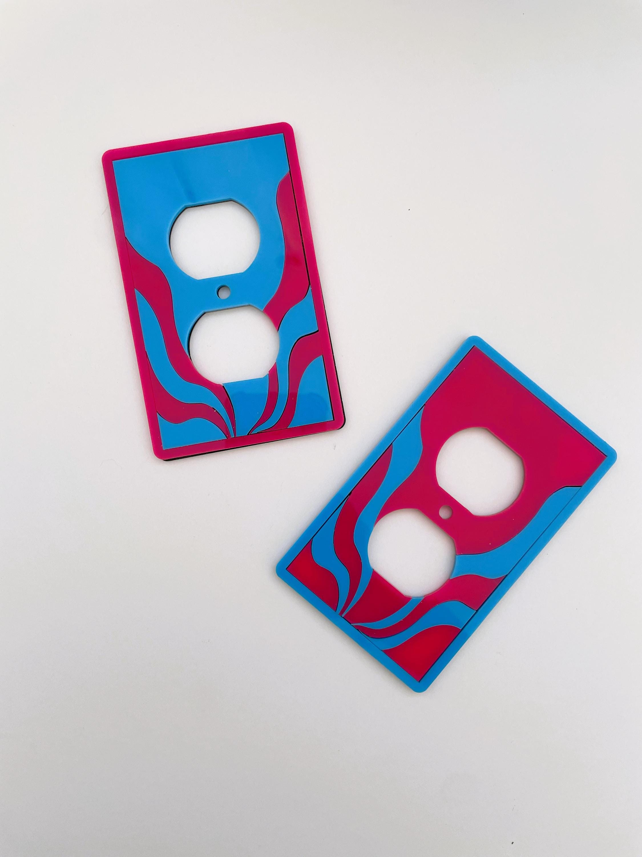 Retro Outlet Cover- Sunburst Acrylic Patterns- Pink Blue